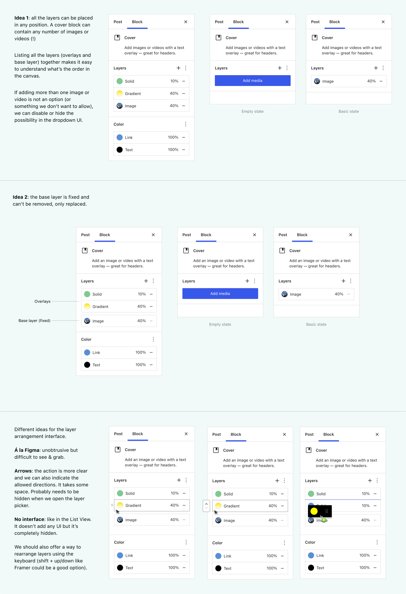 @javiarce and @joen started collaborating on improving the Cover Block to support multiple overlays.