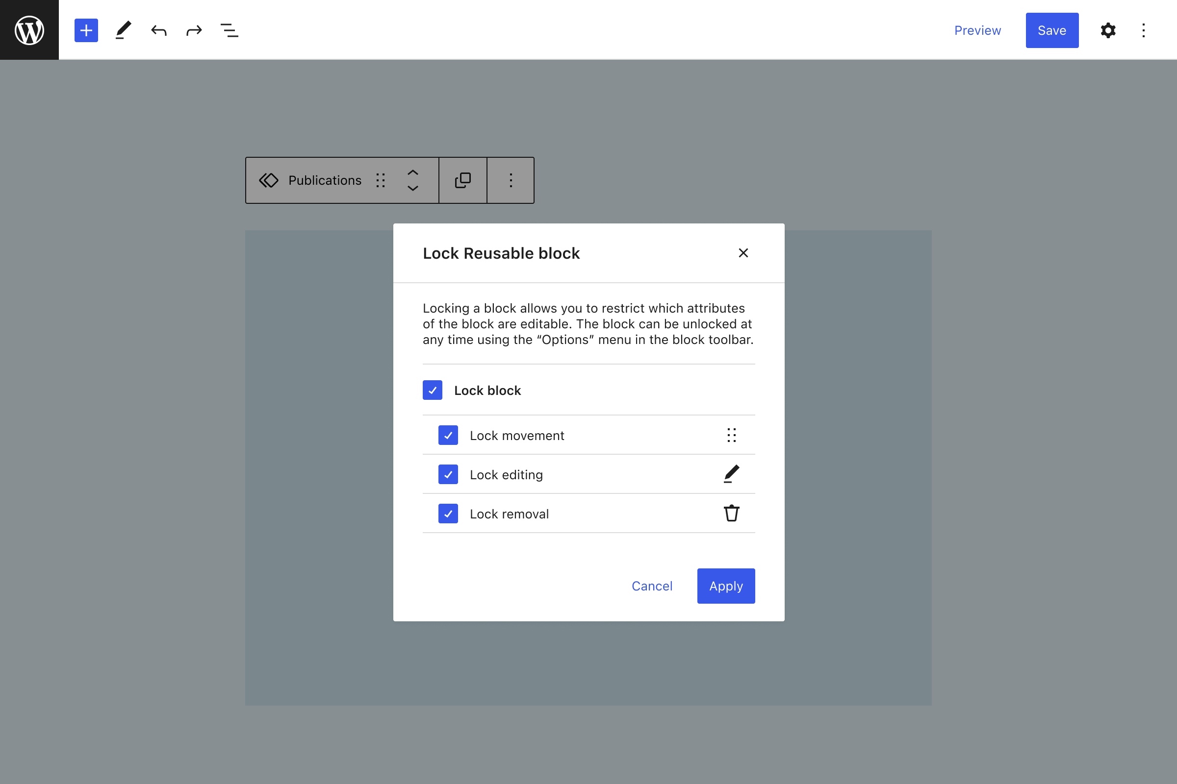 Cover blockBlockBlock is the abstract term used to describe units of markup that, composed together, form the content or layout of a webpage using the WordPress editor. The idea combines concepts of what in the past may have achieved with shortcodes, custom HTML, and embed discovery into a single consistent API and user experience.