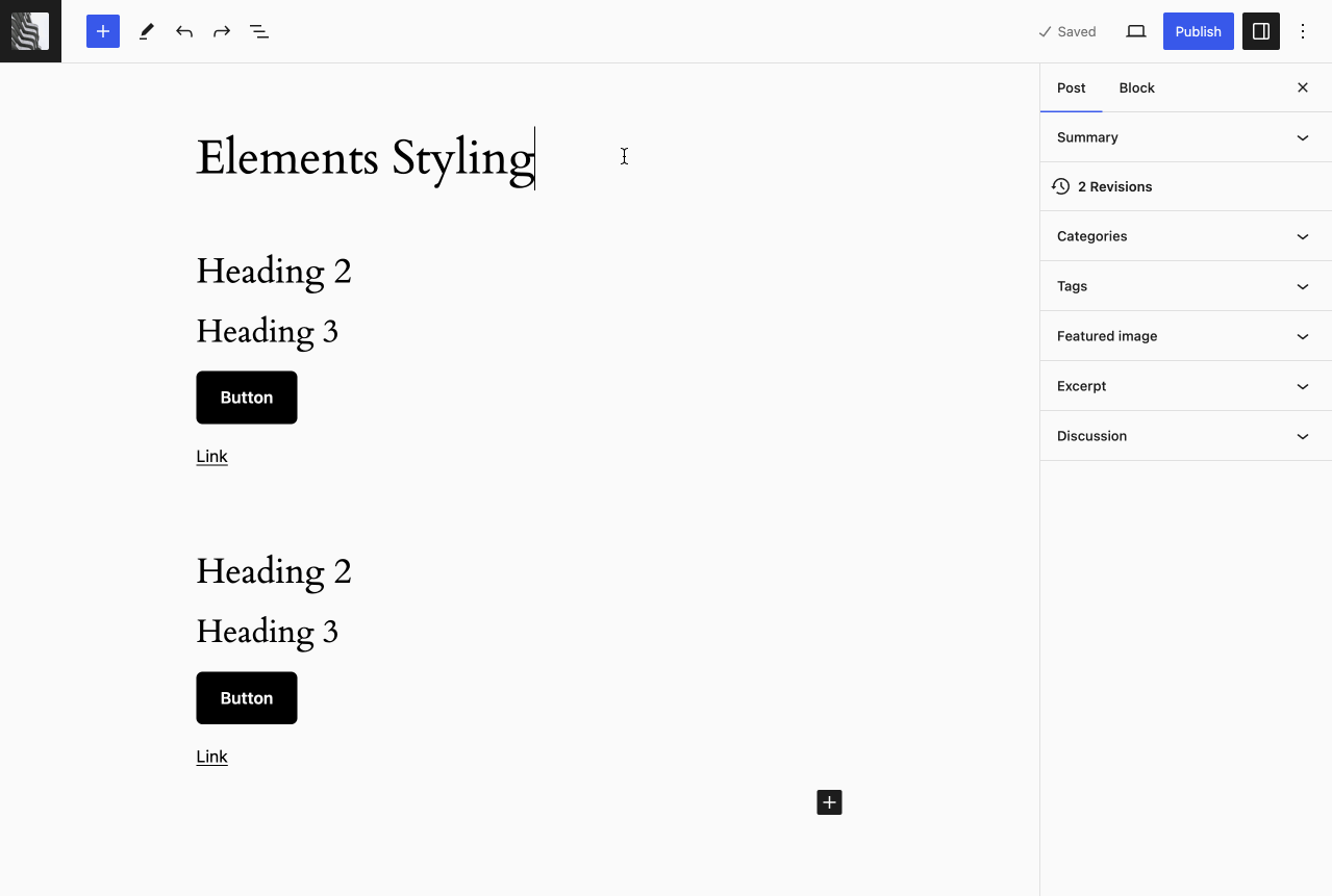 A PR is in progress to add nested elements styling, both through containers in the editor, and through theme.jsonJSONJSON, or JavaScript Object Notation, is a minimal, readable format for structuring data. It is used primarily to transmit data between a server and web application, as an alternative to XML.