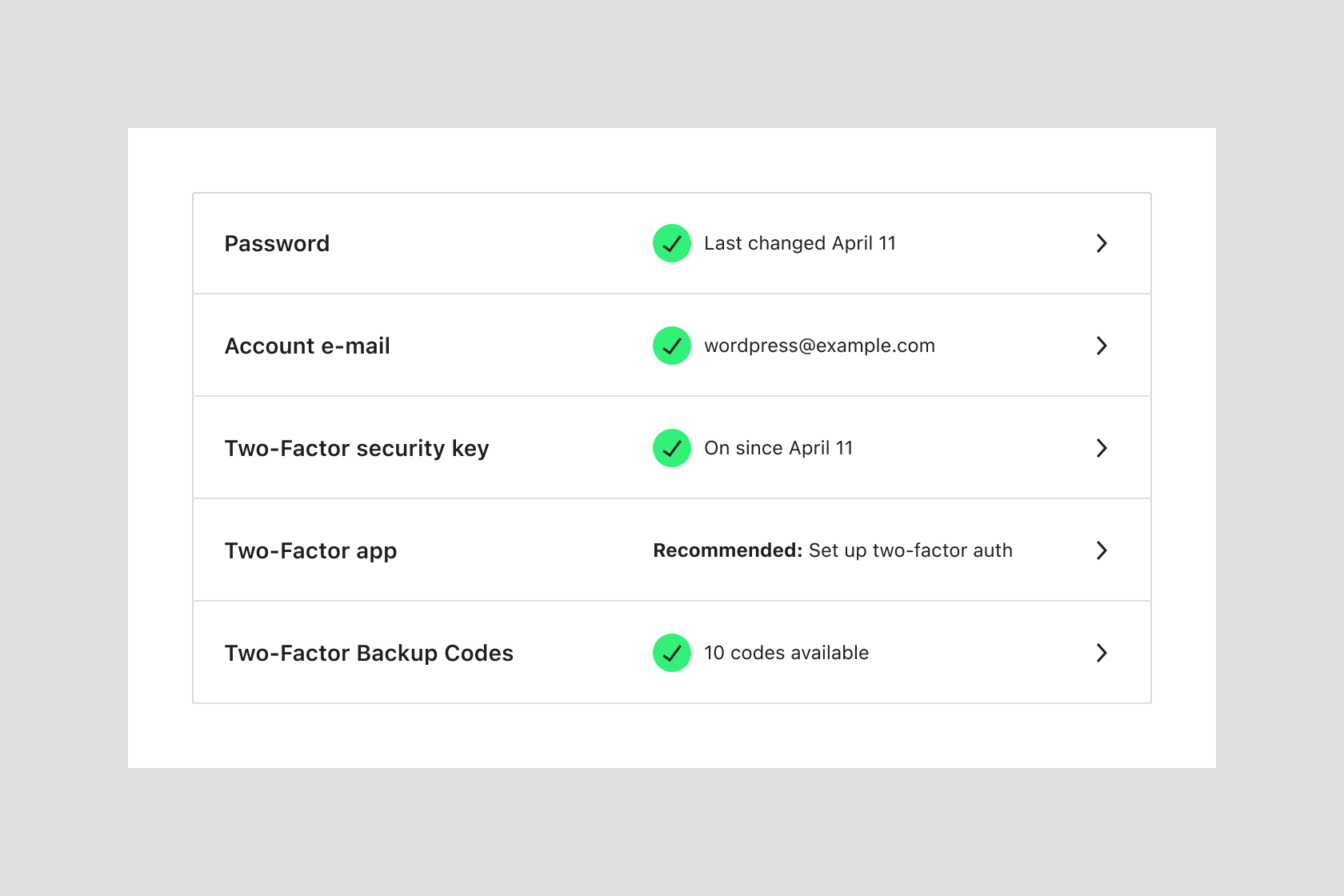 A few options for how to list out security options in WordPress.orgWordPress.orgThe community site where WordPress code is created and shared by the users. This is where you can download the source code for WordPress core, plugins and themes as well as the central location for community conversations and organization. https://wordpress.org/ profiles. Issue.