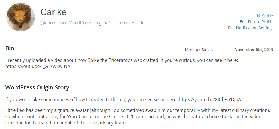 WordPress offers users the ability to add personal information, including bios and origin stories, to their profiles.
