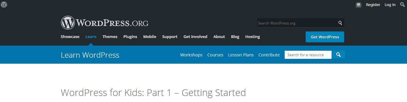 Visitors to KidsCamp content on Learn WordPress can sign up for a WordPress.org account.